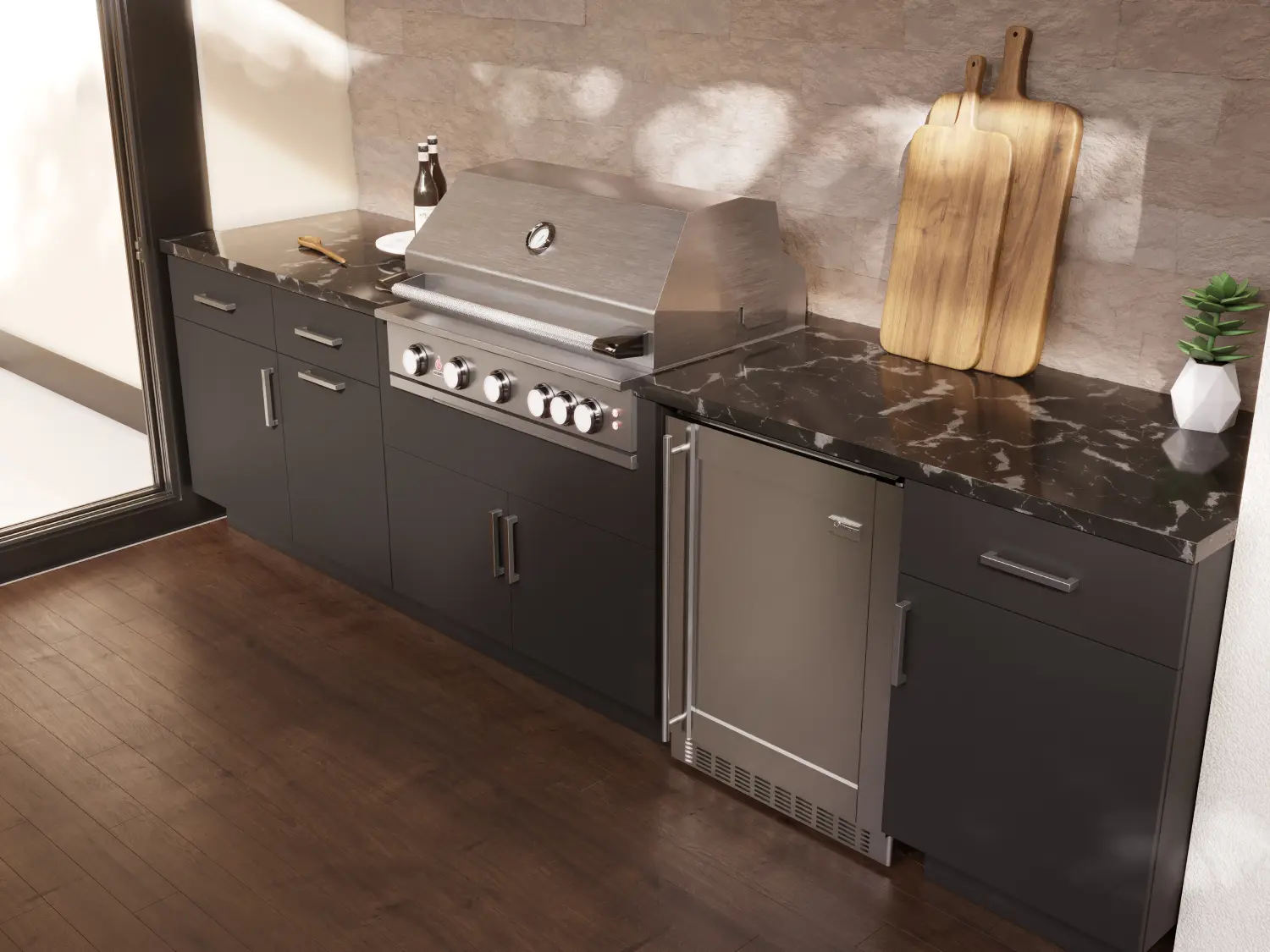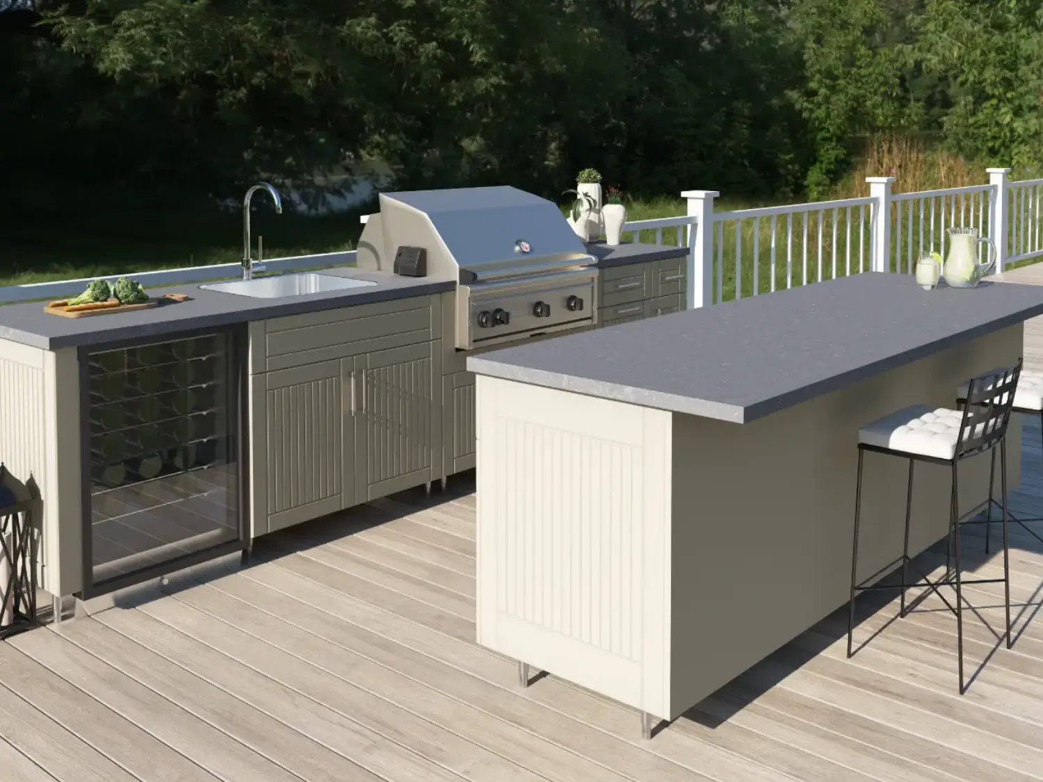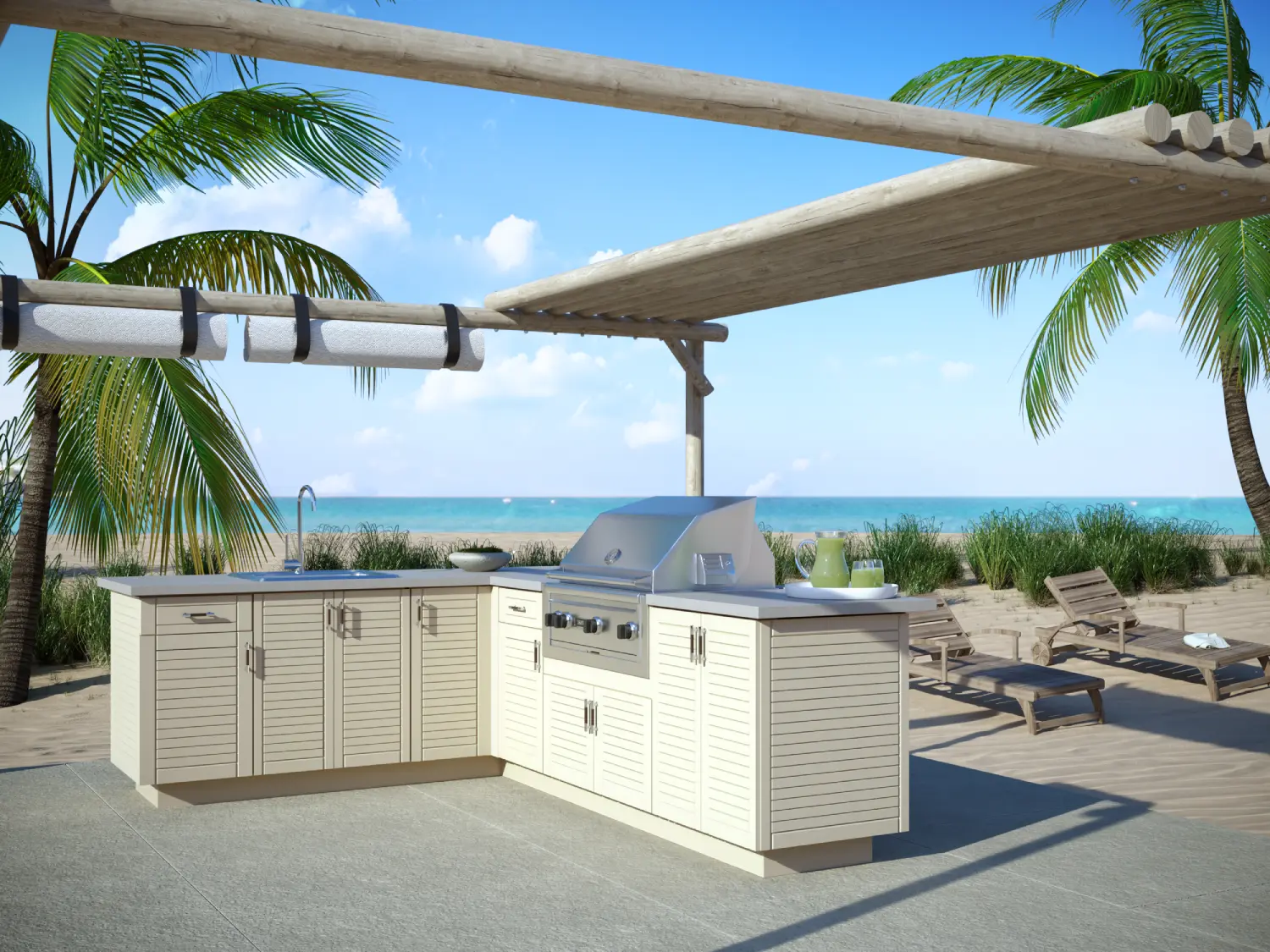 These cabinets aren’t just built to survive the outdoors—they’re made to elevate your lifestyle. Whether you’re renovating a vacation rental or upgrading your family’s home, we’ll help you choose a layout and finish that suits your space.